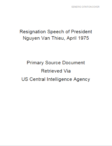 Resignation Speech of President Nguyen Van Thieu (PRIMARY SOURCE DOCUMENT) -