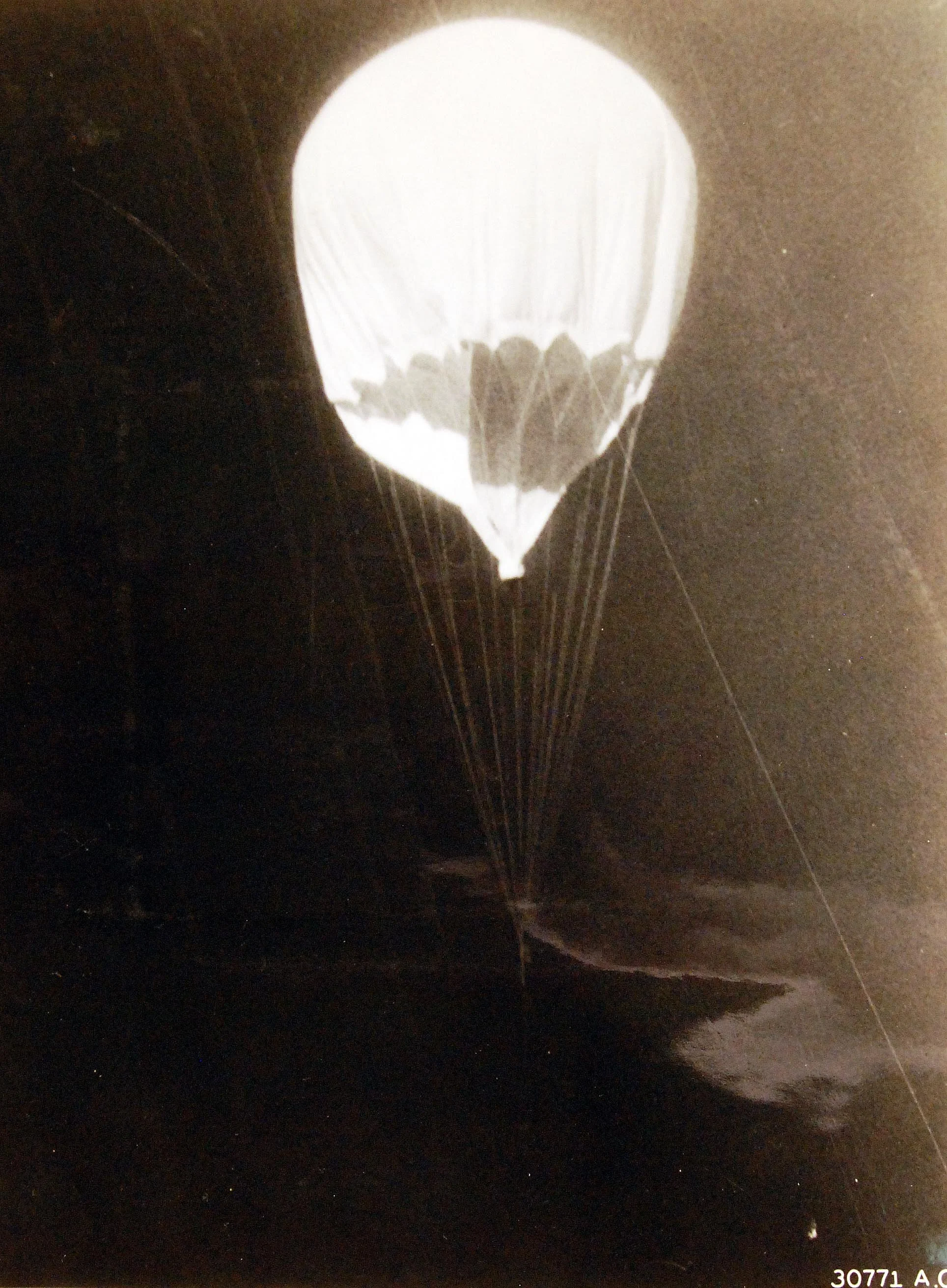 A Japanese Fu-Go balloon bomb photographed by a USAAF plane