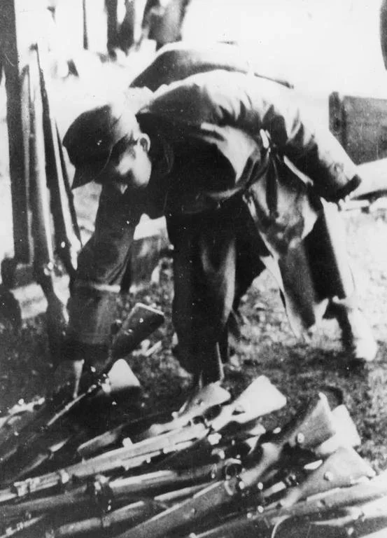 Polish Home Army soldiers lay down their arms after the end of the Uprising