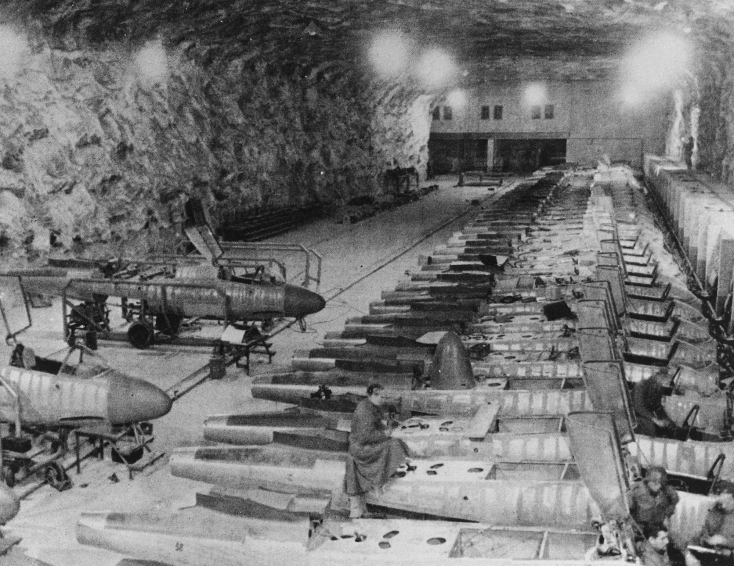A view of Heinkel HE162 jet fighters inside an underground production plant