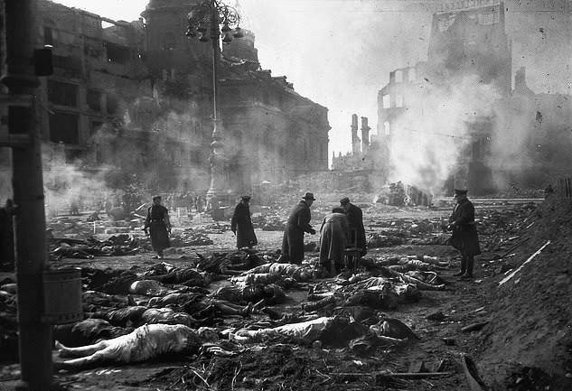 Bodies are collected in the ruins of Dresden after the raid